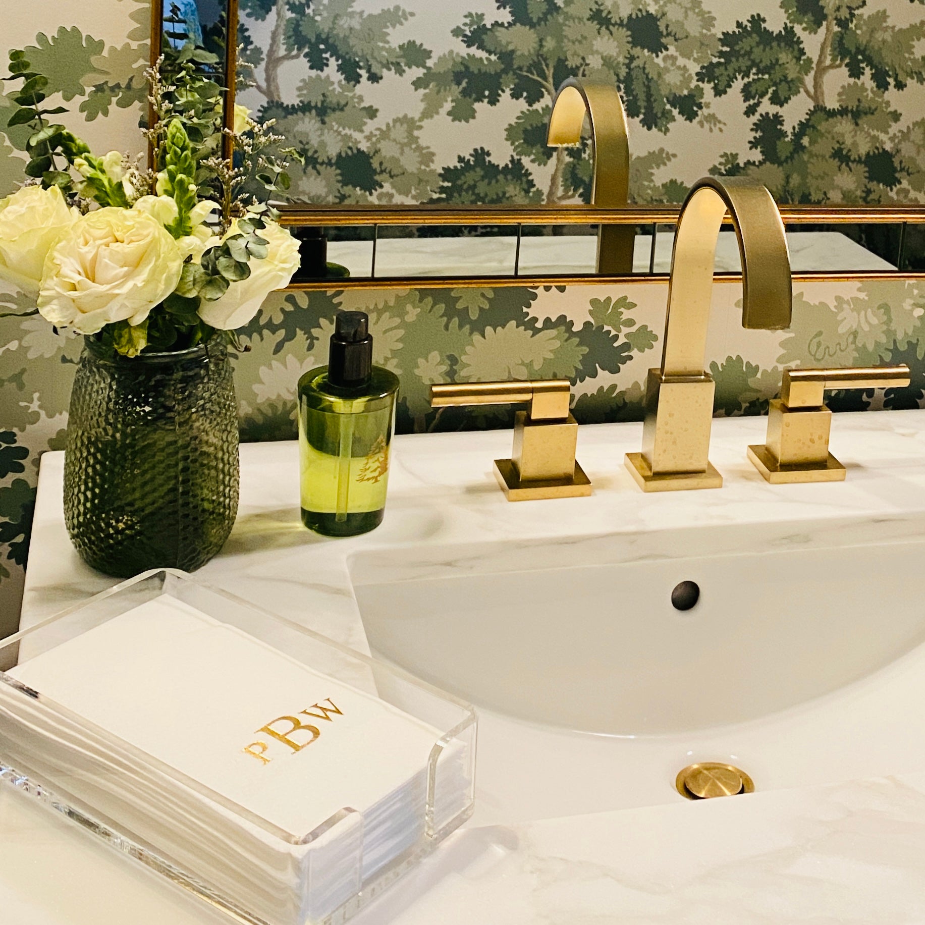 Personalize your powder room with custom monogrammed linen like hand towels. Make them yours with a single initial or 3 letter monogram and your choice of font and foil color.